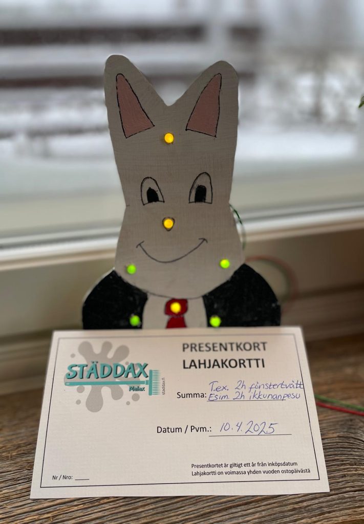 – Ett presentkort på en städning på valfri tid, eller kanske en fönstertvätt är det rätta svaret?